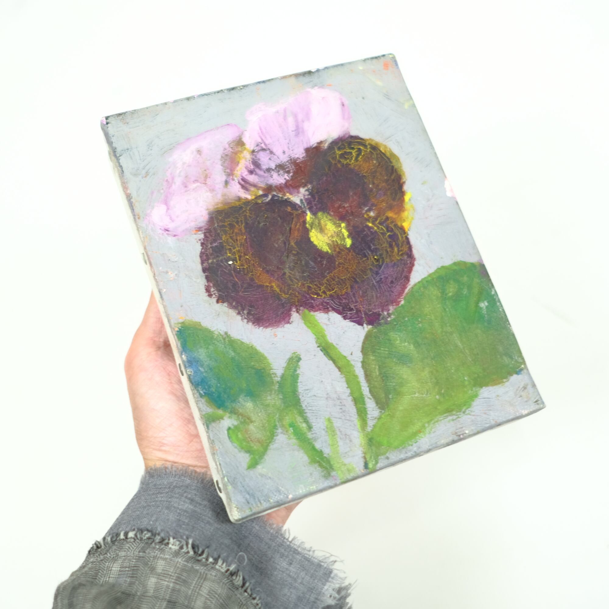 大変古い 絵画 花 油絵 キャンバス インテリア 額無し 紫陽花 アート