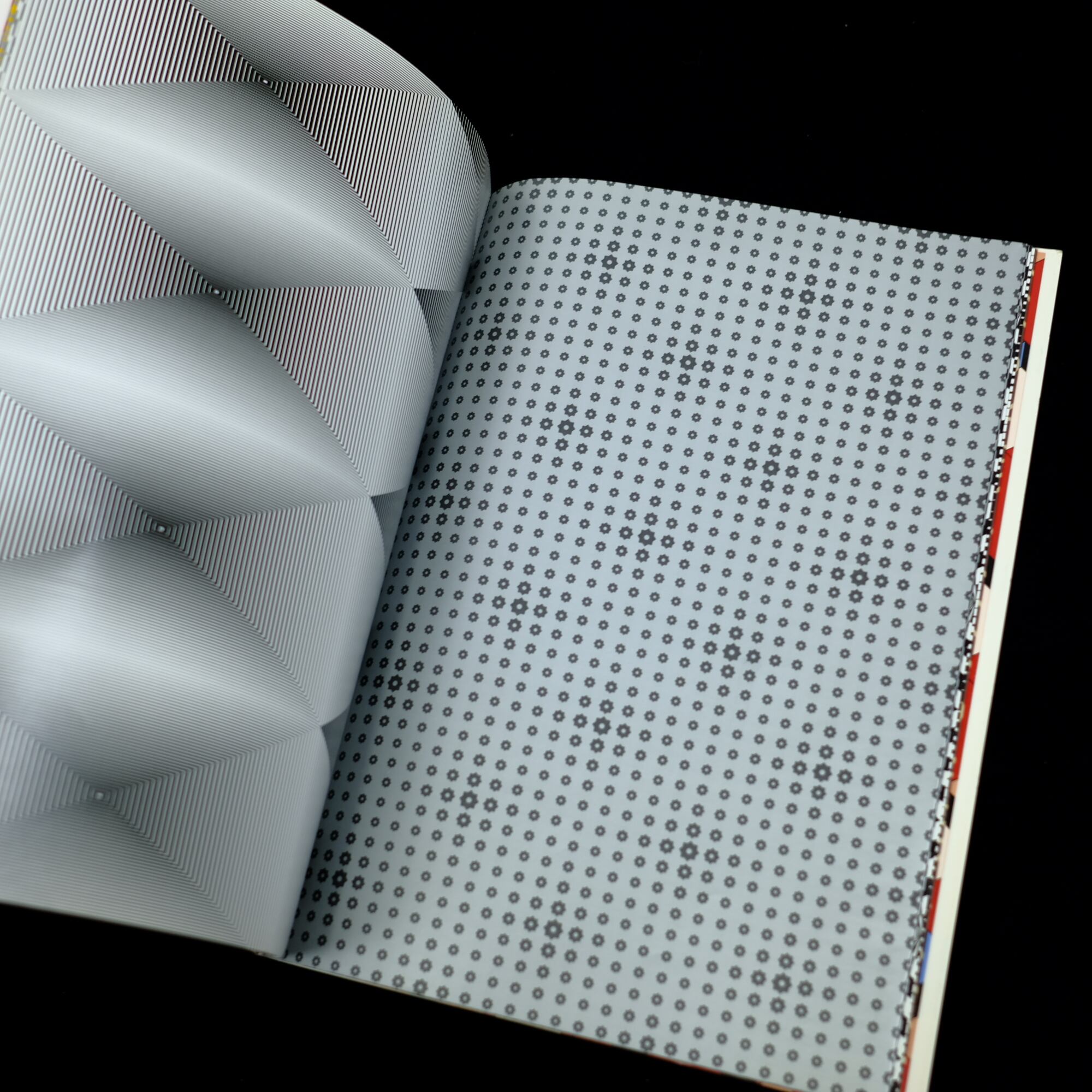 1960年代に流行した視覚芸術「オプ・アート(幾何学模様の錯視芸術)」をテーマにした、モダンでエッジの効いたデザインが12種類収録されています。