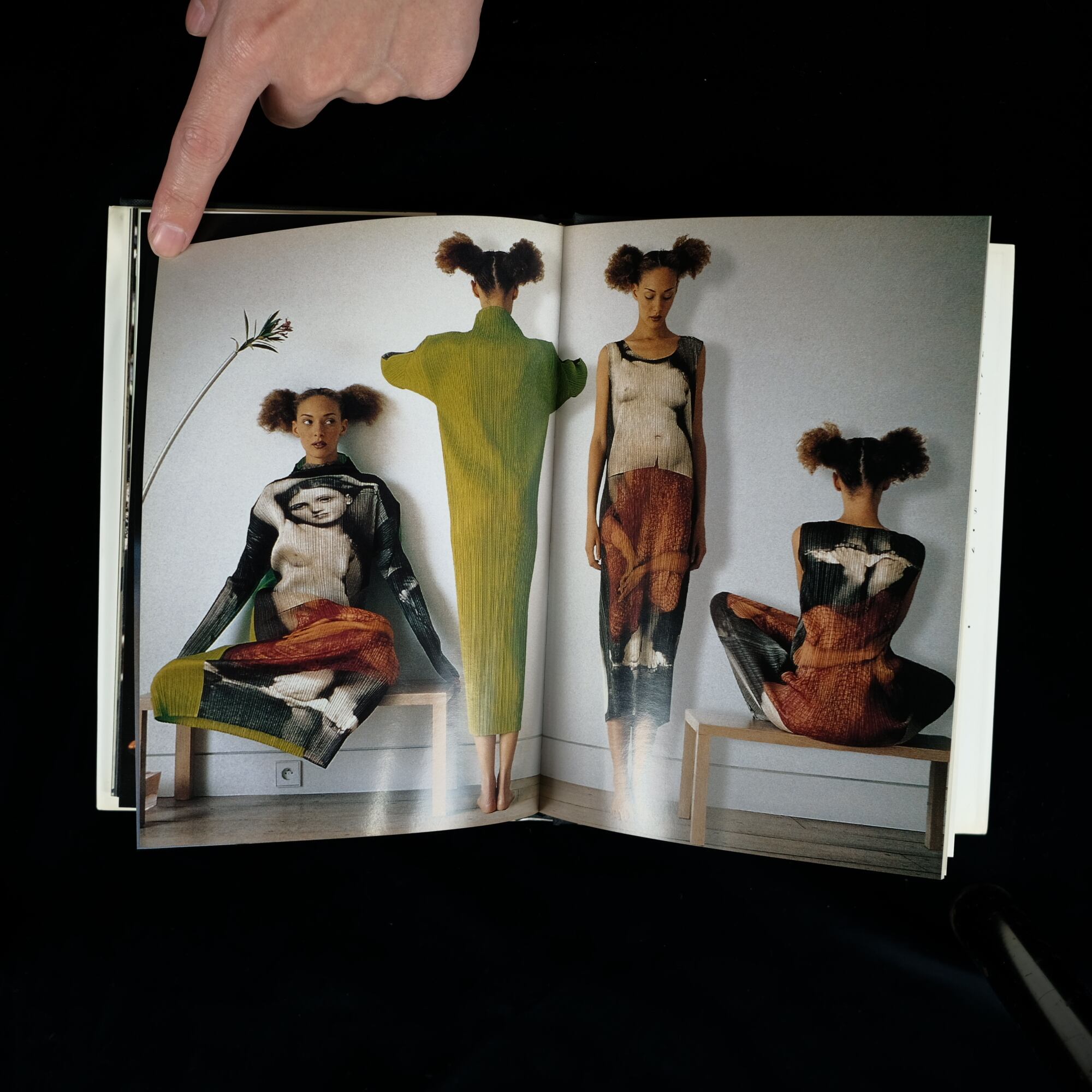三宅一生の代名詞である「プリーツ・プリーズ(Pleats Please)」や、ダイナミックな造形美を捉えたアーカイヴ写真が多数収録されています。