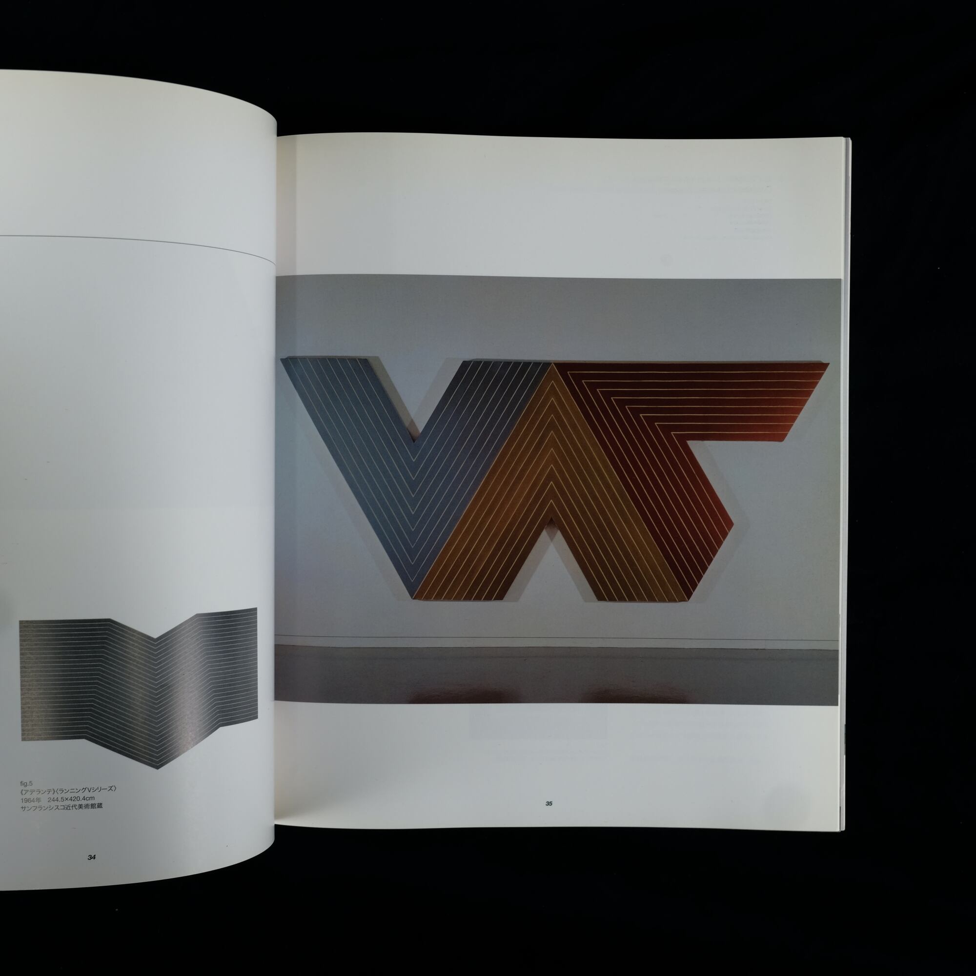 1950年代のブラック・ペインティングから、ステラの代名詞である「シェイプト・キャンヴァス」、そして後年のダイナミックな立体作品(3D作品)まで、彼の画業の変遷を辿ることができる貴重な一冊です。