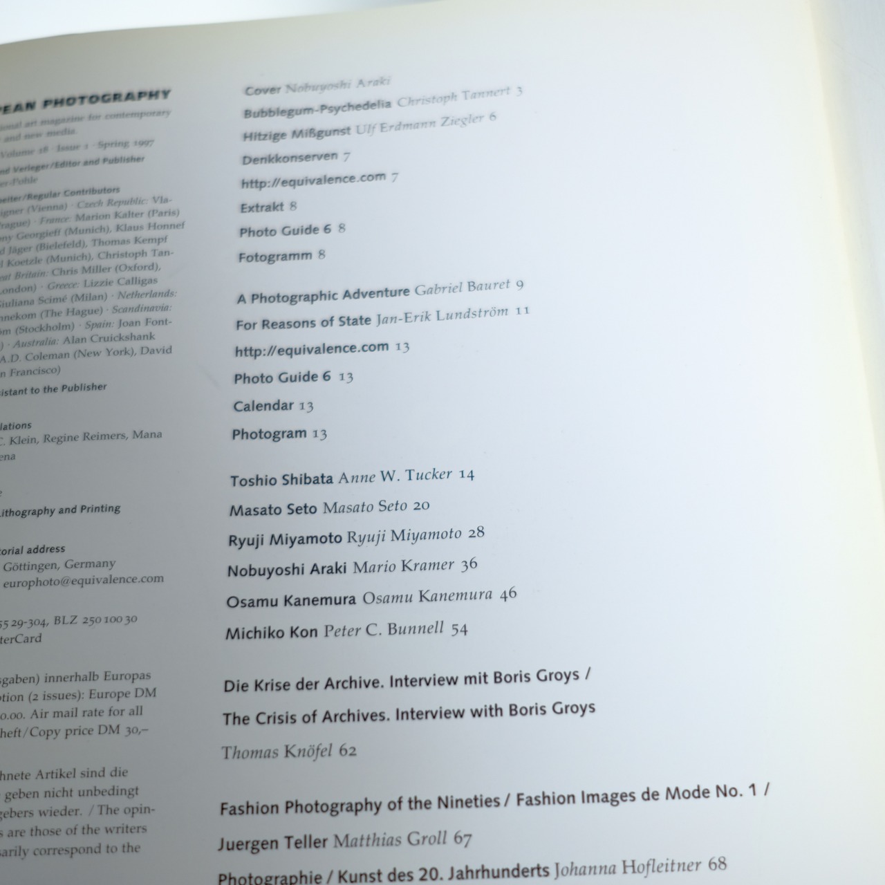 EUROPEAN PHOTOGRAPHY Art Magazine Number 61 1997